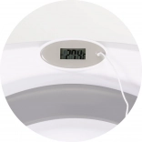A víz hőmérséklete az integrált kijelzőn ellenőrizhető, fürdetés után pedig a dugó és a tömlő segítségével kényelmesen leereszthető.
