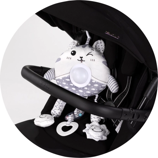 A Big Kitty plüss cica ideális társ a babának – megnyugtat, szórakoztat és támogatja az érzékelést. Az univerzális akasztóval könnyen rögzíthető babakocsira, autósülésre vagy kiságyra. A kellemes anyagok, finom színek és fényhatások meghitt légkört teremtenek játékhoz és elalváshoz.