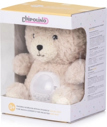 A bézs színű CHIPOLINO plüss maci puha társ, amely segít a gyermeknek nyugodtan elaludni. Megnyugtató hangokat, dallamokat és finom fényhatásokat kombinál, így kellemes környezetet teremt az alváshoz. A sírásérzékelőnek köszönhetően magától aktiválódik, amikor a gyermek sírni kezd, és azonnali megnyugvást kínál anélkül, hogy be kellene avatkoznia.
