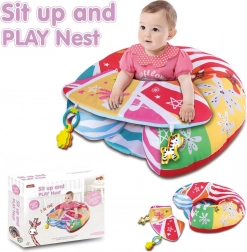 Puha és stabil töltetének köszönhetően biztos támaszt ad, míg a színes minták és az interaktív elemek segítik az érzékelés és a kéz–szem koordináció fejlődését. A praktikus anyag könnyen tisztítható, így készen áll a mindennapi kalandokra.