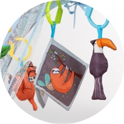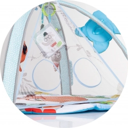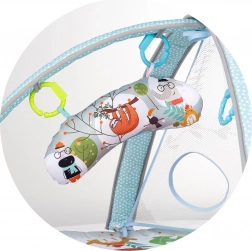 A függesztett játékok, a tükör, valamint a hang- és fényhatások fejlesztik a látást, a hallást és a kíváncsiságot, miközben mozgásra és nyújtózkodásra ösztönzik a babát.
