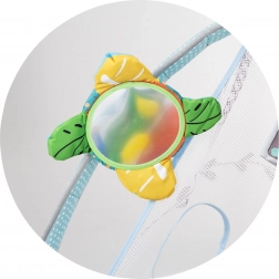 A levehető íveknek köszönhetően pillanatok alatt a klasszikus játszószőnyegből színes labdákkal teli, vidám labdamedence alakítható, amely a gyermekkel együtt fejlődik.
