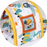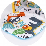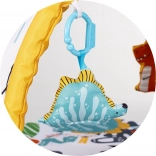 A párnázott alátét az ívvel és a felfüggesztett játékokkal ösztönzi a babát a fogásra, és erősíti a kéz–szem koordinációt.