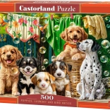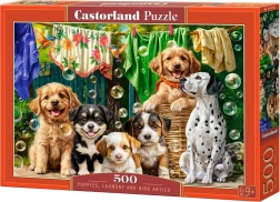 Fedezze fel a vidám kölyökkutyák, a kiteregetett ruhák és a madarak mókázásának bájos motívumát. A CASTORLAND márka puzzle-jei minőségi nyomtatással, élethű színekkel és precíz illeszkedéssel tűnnek ki, így az első darabtól az utolsóig öröm a kirakás. Összeállítva a kép körülbelül 47 × 33 cm – ideális méret keretezéshez vagy kiállításhoz.