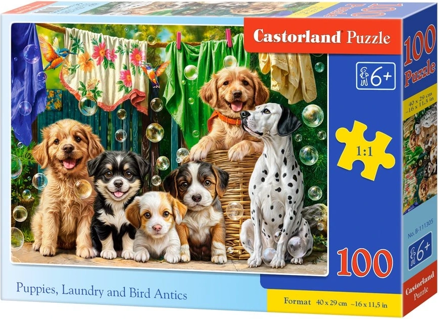 Fedezze fel a kirakózás varázsát a „Kölykök, ruha és madárkák mókája” bájos motívummal. A CASTORLAND puzzle pontos illesztéseivel és élénk színeivel tűnik ki, amelyek minden kirakós kaland során örömet okoznak. A kb. 40 × 29 cm-es kész kép remekül mutat a gyerekszobában kiállítva.