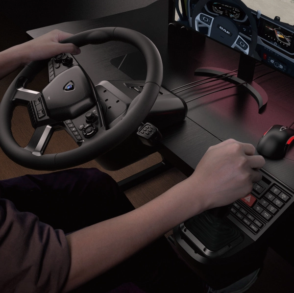 A HORI Force Feedback Truck Control System PC-hez a maximális realizmusra és hosszú távú kényelemre készült. A teljes méretű kormány műbőr borítással és 1800°-os elfordulással hűen szimulálja egy valódi teherautó érzetét, míg a kettős motoros Force Feedback pontosan közvetíti a tömeget, a tapadást és az útfelület sajátosságait. A beépített karok a világítás és fék funkciókhoz, valamint a gazdag gombkészlet közvetlen és gyors hozzáférést ad minden funkcióhoz.