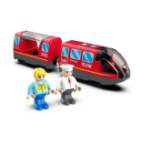A modern piros elektromos gyerekvonat realista részletekkel, automatikus, elemes haladással és mágneses kapcsolással kínál játékélményt. A készletben 2 figura is található a gazdag történetekhez, a játék pedig kompatibilis a fa vonatpályákkal a legtöbb gyártótól. Kiválóan fejleszti a finommotorikát, a koordinációt és a képzelőerőt.