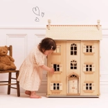 A LE TOY VAN hangsúlyt fektet az etikus gyártásra, a fenntartható anyagokra és a tartósságra. A babaház műanyagmentes, 3 éves kortól ajánlott, és kiegészíthető fa bútorokkal, babákkal és további kiegészítőkkel (nem részei a csomagnak). Minőségi kivitelezésének köszönhetően ideális a testvérek közötti megosztásra és a generációk közötti átörökítésre.