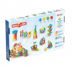 Fedezze fel a 3D alkotást a GEOMAG MAGICUBE mágneses kockáival. A speciális belső szerkezetnek köszönhetően a kockák mind a hat oldalukon vonzzák egymást, szilárdan tartanak a levegőben is, és lehetővé teszik a egyszerű és biztonságos építést már 1 éves kortól. A csomag 64 kockát tartalmaz négy színben, 100% újrahasznosított műanyagból, Svájcban gyártva.