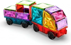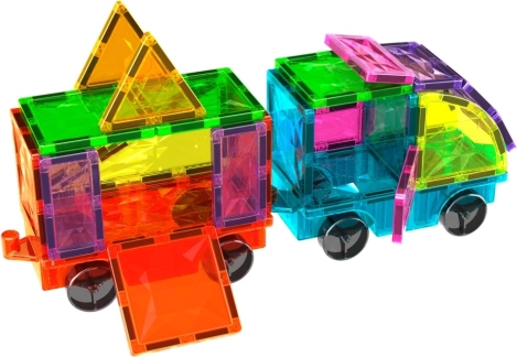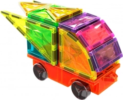 Ez a színes építőkészlet nyitott játékot és végtelen építési lehetőségeket kínál. A formák minden oldalába épített mágnesek megkönnyítik és stabillá teszik az összekapcsolást, így a gyerekek gyorsan összeállíthatják saját autóikat, utánfutóikat és egyedi 3D szerkezeteiket. A játék természetes módon fejleszti a térbeli tájékozódást, a színek felismerését és a geometriai formák megértését.