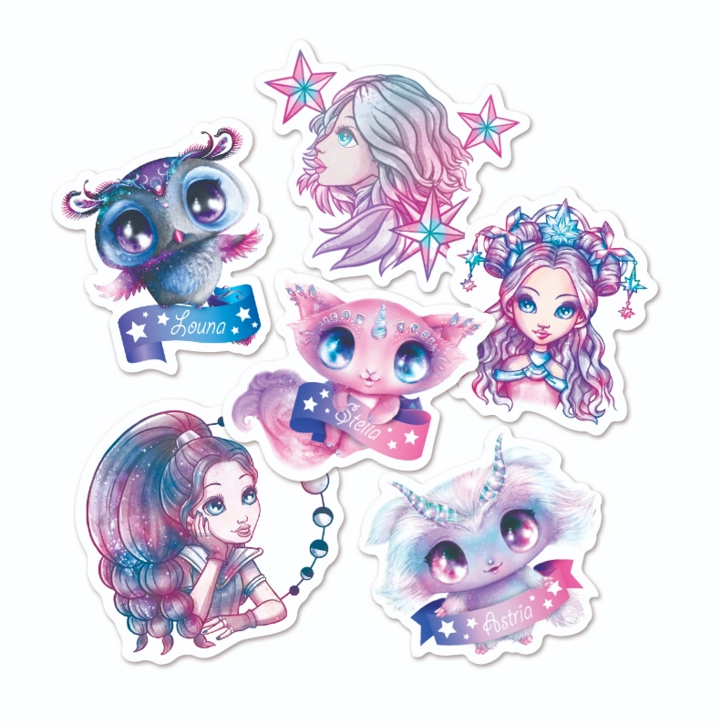 Dobd fel tárgyaidat a NEBULOUS STARS egyedi motívumaival! A tartós vinilből készült matricák fényes felületűek, precíz kivágásúak, és gyönyörű, lányokat és aranyos állatkákat ábrázoló illusztrációkkal készülnek csillag & fantasy elemekkel. Vízállóságuknak köszönhetően jól tapadnak kulacsokon, határidőnaplókon és elektronikán, és ellenállnak a mindennapi nedvességnek.