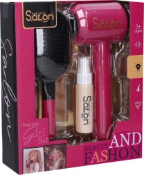 Ez a bájos kozmetikai szett remek választás azoknak a gyerekeknek, akik szeretnek fodrászosat játszani. A működő, elemes hajszárító valóságos élményt ad, miközben a kefe és a spray segítségével gondoskodhatnak a babák és a barátok hajáról. A kompakt, 21 cm-es méretnek köszönhetően a szett kényelmesen kézben tartható és könnyen hordozható.