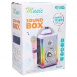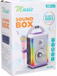 Élvezd az otthoni karaoke-t és a szórakozást útközben ezzel a 28 cm magas, hordozható zenei dobozzal. Kínál Bluetooth csatlakozást, hangfelvételt és hangváltoztatást, akár 10 beépített dallamot, öt világítási módot és 4 hangerőszintet. Továbbá AUX bemenet, fejhallgató-port, 2 mikrofon csatlakoztatásának lehetősége és praktikus alvó mód 5 perc tétlenség után. A csomagban 1 mikrofon található.