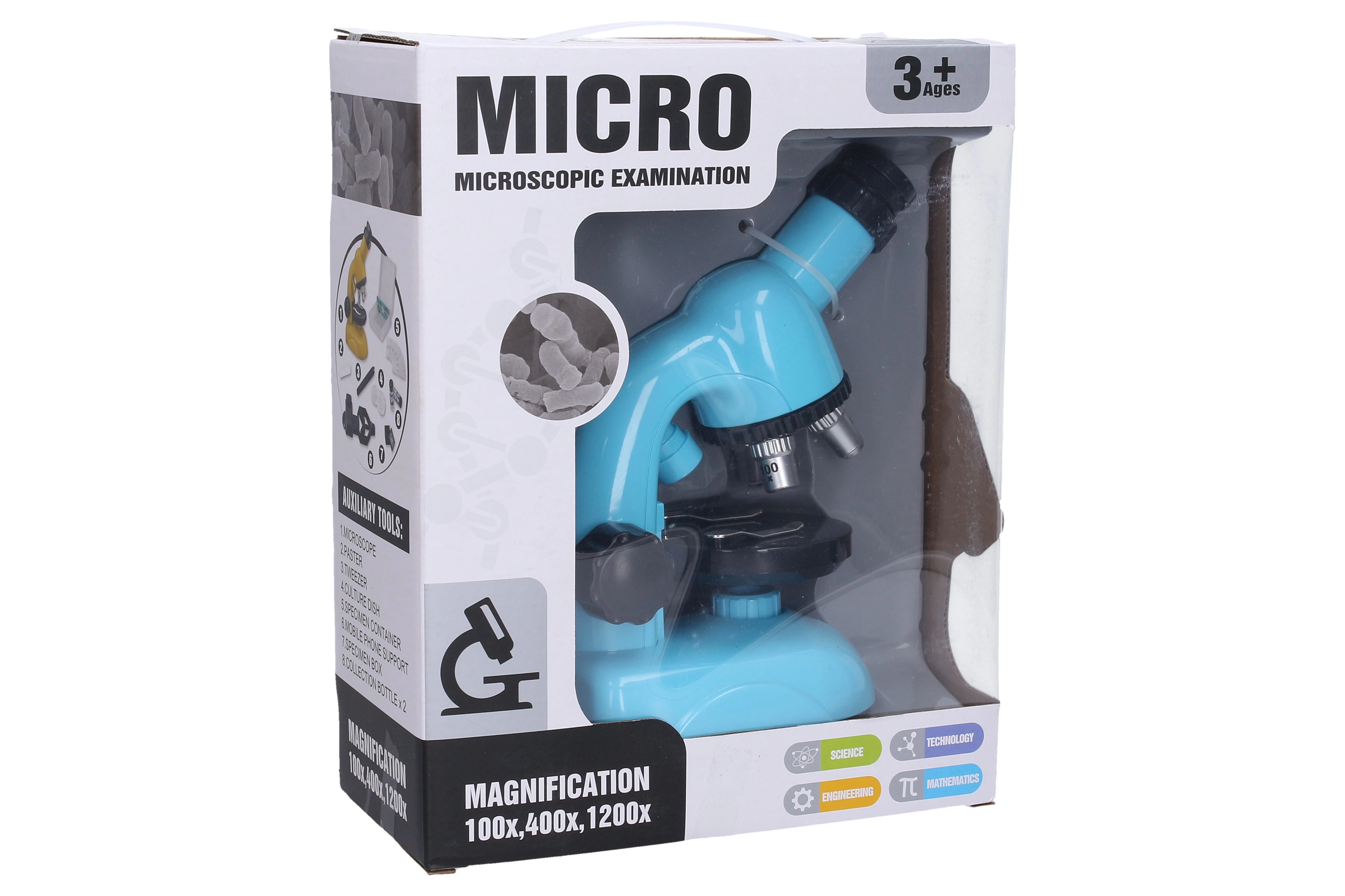 Fedezze fel a mikroszkópia világát ezzel a kompakt, 21 cm-es mikroszkóppal, amely 10×, 400× és 1200× nagyítást kínál. A csomag része egy mobiltelefon-tartó a nagyított minták fotózásához, egy tárgylemez-készlet és alapvető kiegészítők az első kísérletekhez. A tápellátást 2× AA elem biztosítja (nem tartozék).
