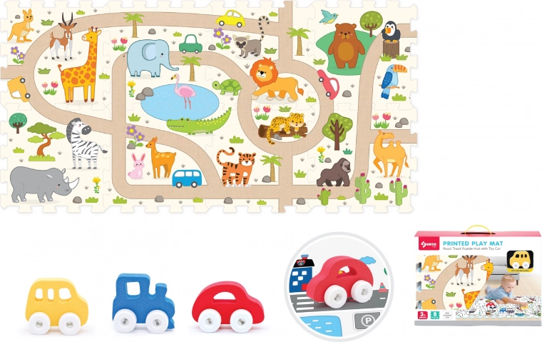 Fedezze fel a szórakoztató és biztonságos játékot ezzel a puha kockákból és szafari autócskából álló készlettel. A szett 8 puha kockát tartalmaz, méretük 31,5 × 31,5 × 1 cm, valamint egy szabadon futó kerekű autócskát, amely támogatja a kreativitást, a finommotorikát és a biztonságos játékot otthon és óvodában is.
