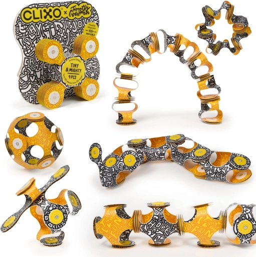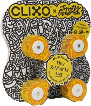 Fedezze fel a zsebméretű Clixo Tiny & Mighty Artist Edition készletet TIMOTHY GOODMAN alkotóval együttműködésben. Ez a rugalmas, mágneses építőkészlet strapabíró szintetikus papírból készül, és 9 könnyű elemet kínál markáns grafikával, amelyekből akár 100 különböző modellt is összeállíthat. A erős mágneseknek és a 360°-os forgópatentnek köszönhetően az alkotások stabilan tartják a formát, a játék pedig szórakoztató otthon, az osztályban és utazás közben is.