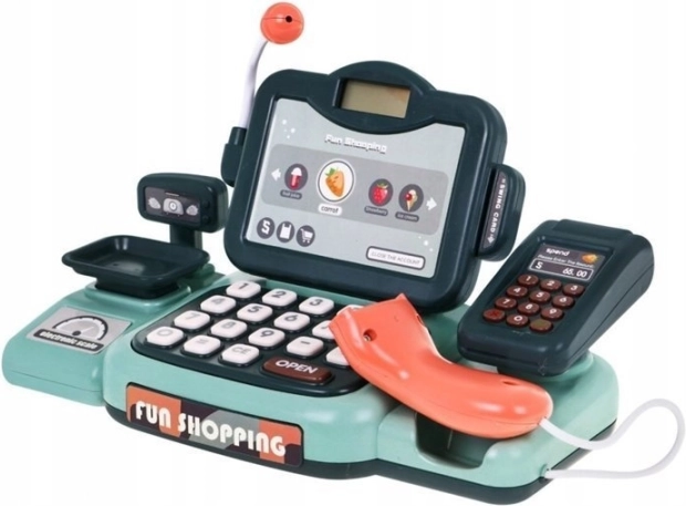 Ez a gyermek pénztárgép hiteles vásárlási élményt nyújt. A működő szkennernek, a kártyás fizetésre szolgáló terminálnak és a hangeffekteknek köszönhetően a gyerekek gyakorolják a számolást, az árak felismerését és a szociális készségeket. A zenei móddal ellátott mikrofon akár 25 vidám dalt kínál, amelyek feldobnak minden játékot.