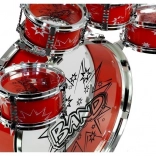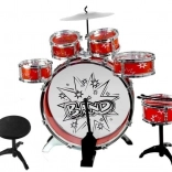 A készlet tartalmaz egy nagydobot pedállal, állványos pergődobot (snare), középső tomot, három kis tomot, egy cintányért és egy kényelmes ülőkét. Kompakt méreteinek köszönhetően jól illik a gyerekszobába, és ösztönzi a gyerekeket a zenei fejlődésre, kreativitásra és a kéz-láb koordináció fejlesztésére.