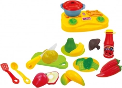 - A készlet tartalma: gyümölcs- és zöldségmix, tépőzáras szeletelhető darabok, kiegészítők; összesen 17 db