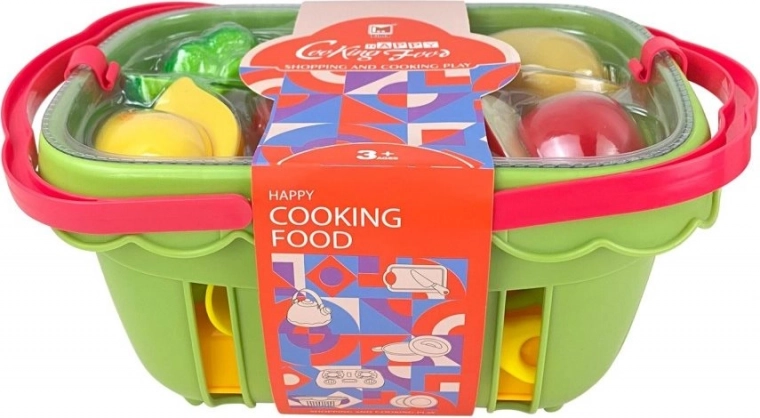 A könnyű kosár lehetővé teszi a könnyű tárolást és a teljes készlet hordozását. A valósághű színek és formák ösztönzik a fantáziát, és játékos módon segítenek megismerkedni az egészséges táplálkozással.