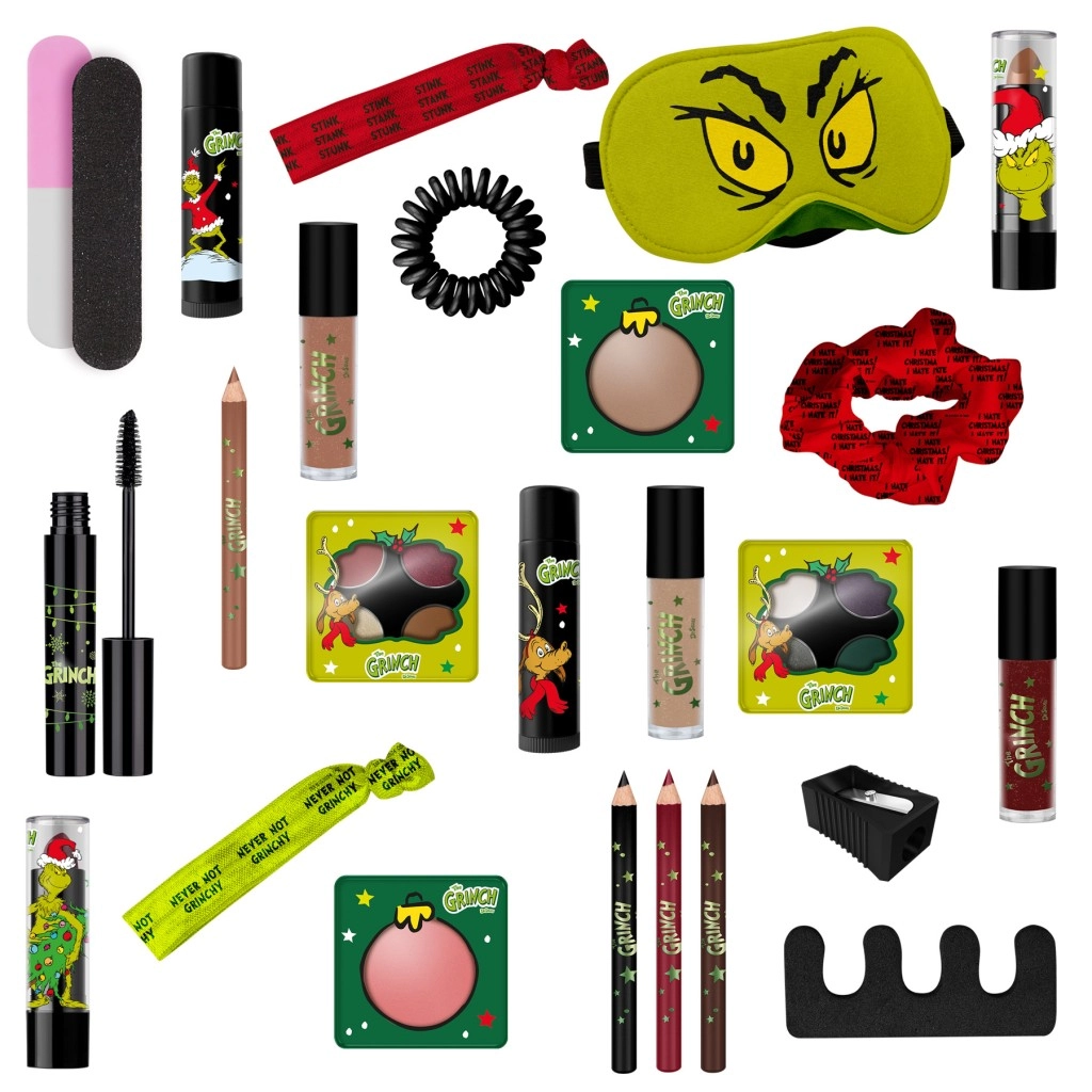 Ez a játékos adventi naptár a GRINCH figurája által inspirálva 24 ablakot rejt tele kozmetikummal és kiegészítőkkel. Készítsen minden nap más-más sminket – a természetestől a látványos ünnepi lookokig. A változatos termékválasztéknak köszönhetően könnyedén megoldja a szemöldök, szemek, ajkak és körmök sminkelését, és kiegészíti azokat a mindennapi ápolást segítő praktikus eszközökkel.