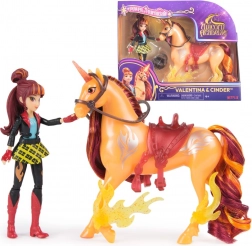 A UNICORN ACADEMY Valentina és Cinder szett a gyerekszobába varázslatos fantáziavilágot hoz, amelyet egy népszerű Netflix-sorozat és egy bestseller könyvsorozat inspirált. A realisztikus részletek, a fémesen csillogó, tüzes mágiát idéző jelek és az állítható baba lehetővé teszik, hogy bátor kalandokkal és barátsággal teli saját történeteket alkoss.