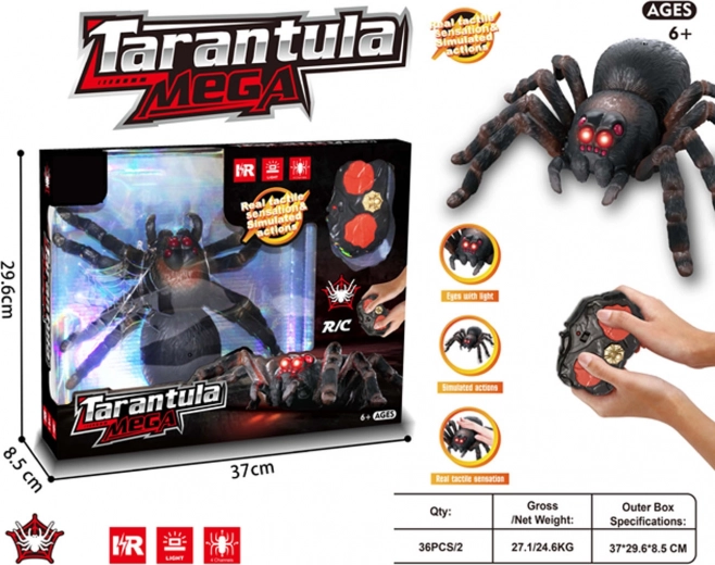 Élethű RC tarantula 6 éves kortól, amely remek szórakozást és egy kis izgalmat is nyújt. Világító szemekkel, puha felülettel és folyamatos 2,4 GHz-es irányítással rendelkezik. Tud előre és hátra menni, 360°-ban forogni, valamint jobbra/balra irányt váltani. Nem hiányzik a demó mód sem, amely bemutatja az összes trükköt.