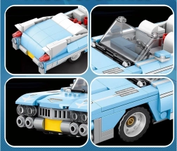 Építsd meg az 50-es évek szellemében az ikonikus autót: kék kabrió hosszú motorháztetővel, alacsony sziluettel és krómozott részletekkel. A 308 darabból valósághű modellt készíthetsz elegáns dizájnnal, közepes nehézségi szinttel és stabil szerkezettel – ideális műszaki építőkészlet-rajongóknak és a klasszikus autóesztétika kedvelőinek.