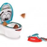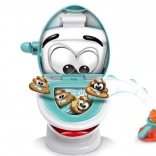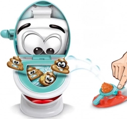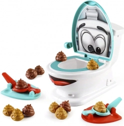 Vicc(es) arcú WC, indítók és két színű „kupacok” ígérnek egyszerű szabályokat és rengeteg mókát. Minden játékosnak saját készlete van, és egyszerre próbálnak betalálni a csészébe – aki először csukja le a fedelet, elnyeri az Öblítés Mestere címet.