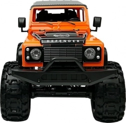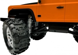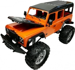 A licencelt LAND ROVER DEFENDER modell látványos narancssárga színben valósághű karosszéria-részletekkel és megbízható teljesítménnyel szolgál a mindennapi szórakozáshoz. Az erős motor, a nagy hasmagasság és a puha, tapadós gumik jó vonóerőt biztosítanak aszfalton és terepen egyaránt.
