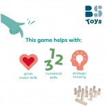 - 12 számozott fa bábu (1–12), 1 dobófa