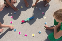 Hogyan játsszuk: a játékosok a nyíl köré állnak, megpörgetik, és az a személy vagy feladat, amelyre a nyíl mutat, meghatározza a színt vagy a számot. Ezután mindenki teljesíti a kihívást – a színek szerinti tárgykereséstől a gyors számoláson át az ugrálásig.