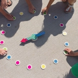 Ez az egyszerű, mégis magával ragadó kültéri játék fejleszti a kreativitást, a csapatmunkát, valamint a finom- és nagymotorikát. A zsetonok egyik oldala színes, a másik számozott, így könnyű váltani a színes kihívások és a számos feladatok között. A tartós, fenntartható forrásból származó fának köszönhetően a játék ellenálló és alkalmas mindennapos használatra.