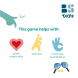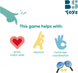 A csomag 2 játékos teljes felszerelését tartalmazza: 2 faütő (40 × 19 cm), 2 labda, hordozható háló és táska az egyszerű tároláshoz és szállításhoz. A szabályok pillanatok alatt megtanulhatók, és kisebb pályán is játszható – például iskolaudvaron vagy tornateremben.