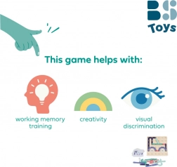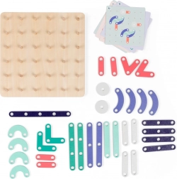 A GEOPLANK egy kreatív játék, amely támogatja a gyerekek természetes kíváncsiságát. A színes faelemeknek köszönhetően a gyerekek egyedi képeket alkothatnak, lemásolhatják a kártyák motívumait, vagy kitalálhatnak saját kompozíciókat. A játék fejleszti a vizuális észlelést, a logikus gondolkodást és a kéz–szem koordinációt.