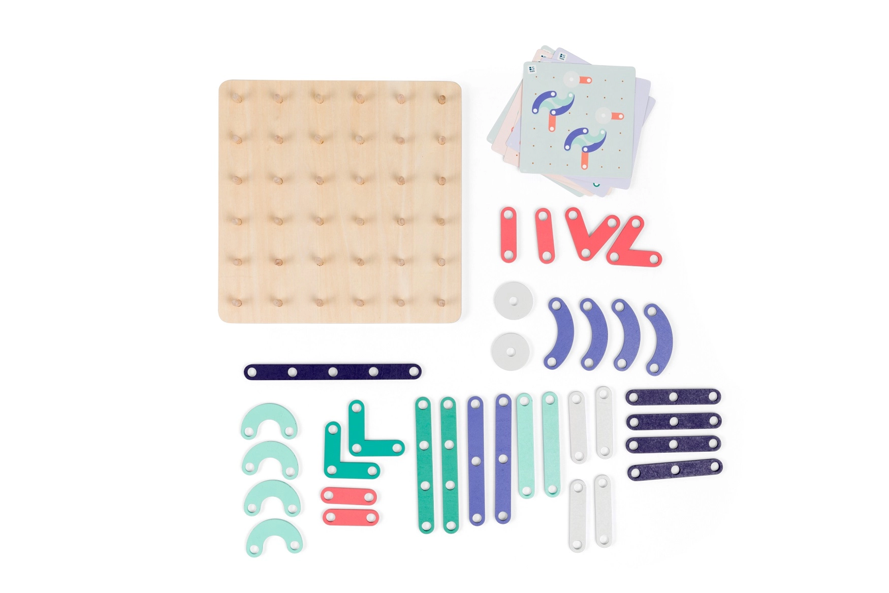Fedezze fel a szórakoztató és oktató játékot, amely ötvözi a kreativitást, a finommotorika fejlesztését és a formák és színek tanulását. A GEOPLANK 4 éves kortól motiválja a gyerekeket saját minták alkotására vagy sablonok kirakására, és órákon át tartó, értelmes szórakozást nyújt.
