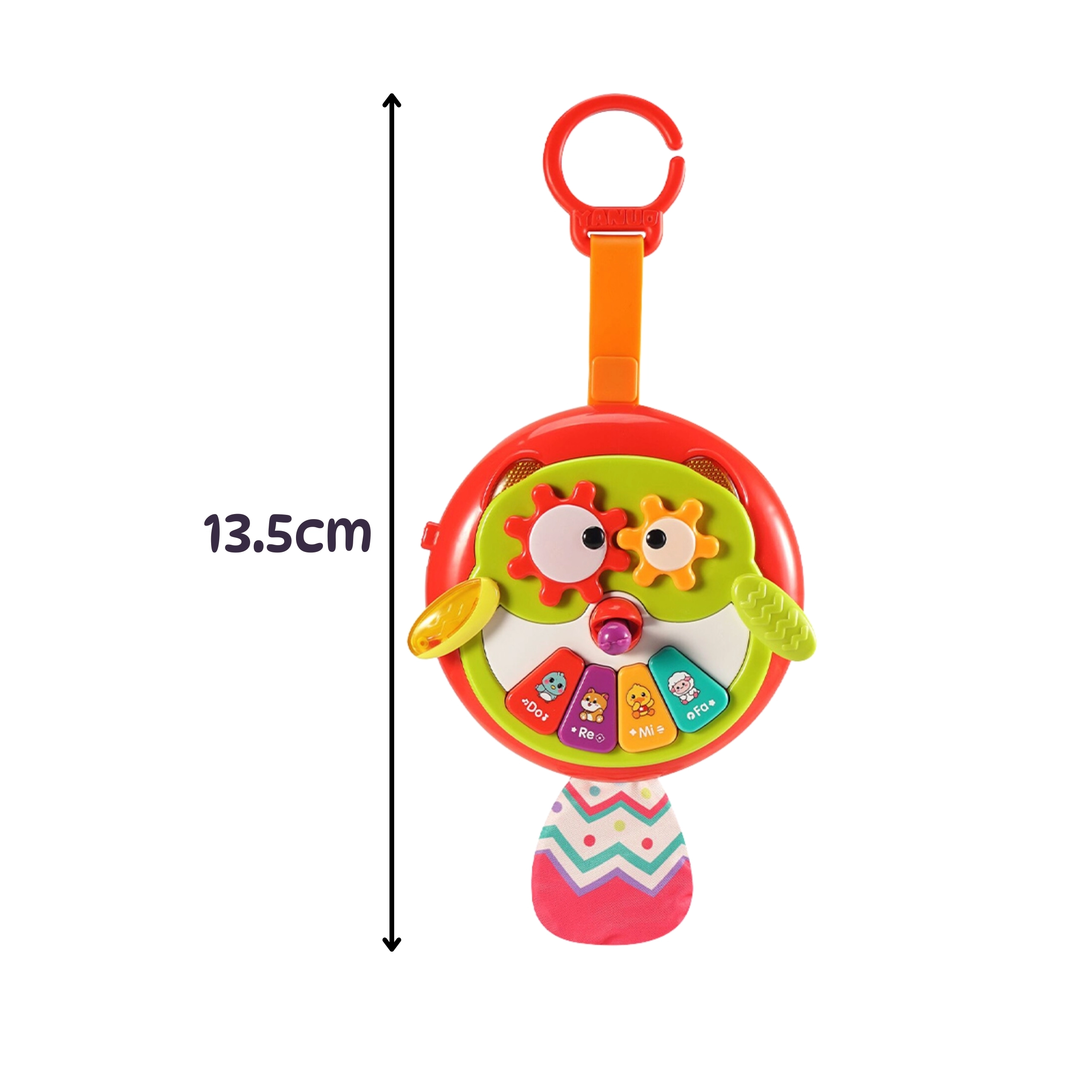 Az interaktív, felakasztható WOOPIE bagolyka remek választás 18 hónapos kortól. Támogatja a hallás, a tapintás és a finommotorika fejlődését, miközben játékos dizájnjával és változatos ingereivel fenntartja a figyelmet. A színes zongorabillentyűk gyengéd dallamokat játszanak, amelyek segítik a hangok és a ritmus felismerését.