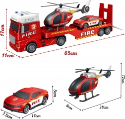 Ez a részletgazdag WOOPIE tűzoltó készlet ötvözi a tanulást és a szórakozást. A valósághű rámpás vontató, a sportos tűzoltóautó és a mentőhelikopter forgó rotorral tökéletes díszletet teremt az akciódús bevetésekhez és a szállításhoz. A fények és hangok a vontatón és a helikopteren még hitelesebbé teszik a játékot, és bevonják a gyerekeket a történésekbe.
