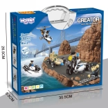 A Woopie Creator City Police Force építőkészlet a 6 éves kortól ajánlott gyerekeknek lehetőséget ad akár 8 különböző rendőrségi jármű – motorok, terepjárók, csónakok és quadok – megépítésére. Szórakoztató és egyben oktató jellegű STEAM játék, amely fejleszti a kreativitást, logikus gondolkodást és a finommotorikát, valamint órákon át tartó remek szórakozást kínál. A praktikus, masszív fogantyús csomagolás utazáshoz és ajándéknak is ideális.