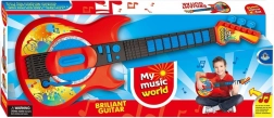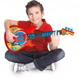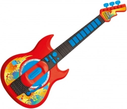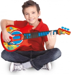 Stílusos gyerek elektromos gitár modern, piros dizájnnal, amely 3 éves kortól örömet szerez a kis zenészeknek. Támogatja a finommotorika, a zenei hallás és a ritmusérzék fejlődését. Két játékmódot, demó dallamokat, effektkart, pengetés-imitációt és hangerőszabályzást kínál.