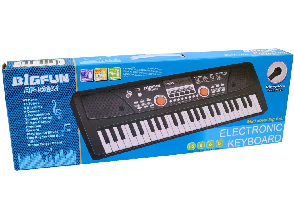 Ez a gyermek elektronikus zongora kiváló első lépés a zene világába. A 49 billentyűnek és a gazdag felszereltségnek köszönhetően a gyerekek elsajátíthatják a játék alapjait, fejleszthetik zenei hallásukat, ritmusukat és kreativitásukat. A csomag része a mikrofon, így a lejátszott dallamokat azonnal énekkel is kísérhetik.