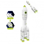 Ez a kozmikus rakéta igazi irányítóközponttá varázsolja a gyerekszobát. A felső modul kinyitható, és műszerfallal ellátott pilótafülkét rejt kényelmes üléssel a figurának. A négy hajtóműves alsó fokozat látványos indítási effektet nyújt – a visszaszámlálás alatt a fúvókákból finom vízgőz áramlik, miközben megszólalnak a hangok és felgyulladnak a fények. A vezérlés egyszerű a hátoldali be-/kikapcsoló gombbal.