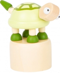 Lepje meg a gyerekeket egy aranyos, az óceán világából ihletett nyomófigurával – teknős, rák, medúza vagy más tengeri lény. Az alsó részben lévő gomb megnyomására az állatka mókásan hullámzik vagy „összerogy”, majd ismét feláll. Ez az egyszerű mechanika nem unalmas, és közben támogatja a finommotorika fejlesztését, a kéz–szem koordinációt és a kreatív játékot.