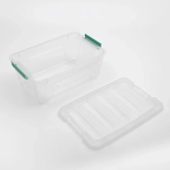 Praktikus műanyag tárolódoboz 12 l űrtartalommal, átlátszó kivitelben az egyszerű tartalomellenőrzéshez. Ideális játékok, építőkészletek, szezonális kiegészítők és háztartási apróságok számára. A zárható fedélnek köszönhetően mindent áttekinthetően és pormentesen tart.