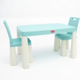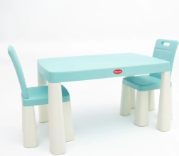 A kb. 83 × 58 × 48 cm-es asztal bőven ad helyet zsírkrétáknak, könyveknek és építőkészleteknek. A székek háttámlával vagy anélkül is használhatók, így könnyen igazíthatók a gyermek életkorához és tevékenységéhez. A szett ideális gyerekszobába, játszószobába, nappaliba és a kertbe is.