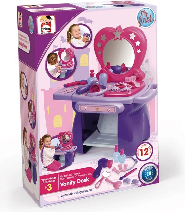 A termék a „My First Vanity Desk” feliratú, mutatós dobozban érkezik, ideális ajándék 3 éves kortól.