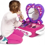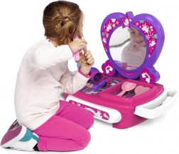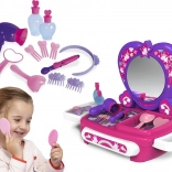 A díszes keretű, szívalakú tükör lehetővé teszi, hogy a gyerekek minden részletet lássanak fésülködés és „sminkelés” közben, ami növeli a szórakozást és az önbizalmat.