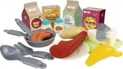 - 19 darabos szett – serpenyő, tányérok, evőeszközök, ételek és további kiegészítők.