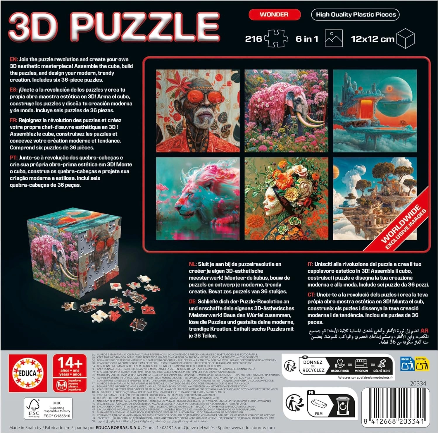 Fedezd fel a kreatív építést a WONDER 3D puzzle kockával az EDUCA-tól. Az átgondolt, 6 részre (egyenként 36 darabra) osztott felépítésnek köszönhetően az összerakás áttekinthető és szórakoztató folyamat, amely a kezdőket és a haladó puzzle-rajongókat is leköti.