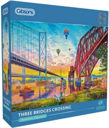 Élvezze a kikapcsolódást a kiváló minőségű Gibsons puzzle összeállításával, Három híd a folyó felett motívummal. A csomag 1000 darabot tartalmaz, és kirakás után 68 × 49 cm méretű képet ad – ideális keretezéshez és kiállításhoz.